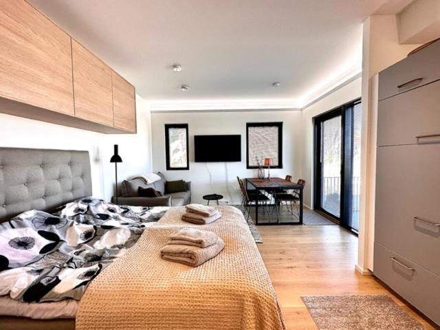 One-Bedroom Apartment. This apartment offers a sauna. The well-equipped kitchen features a stovetop, a refrigerator, kitchenware and an oven. The air-conditioned apartment provides a flat-screen TV, a private entrance, a coffee machine, a wardrobe as well as garden views. The unit offers 2 beds.