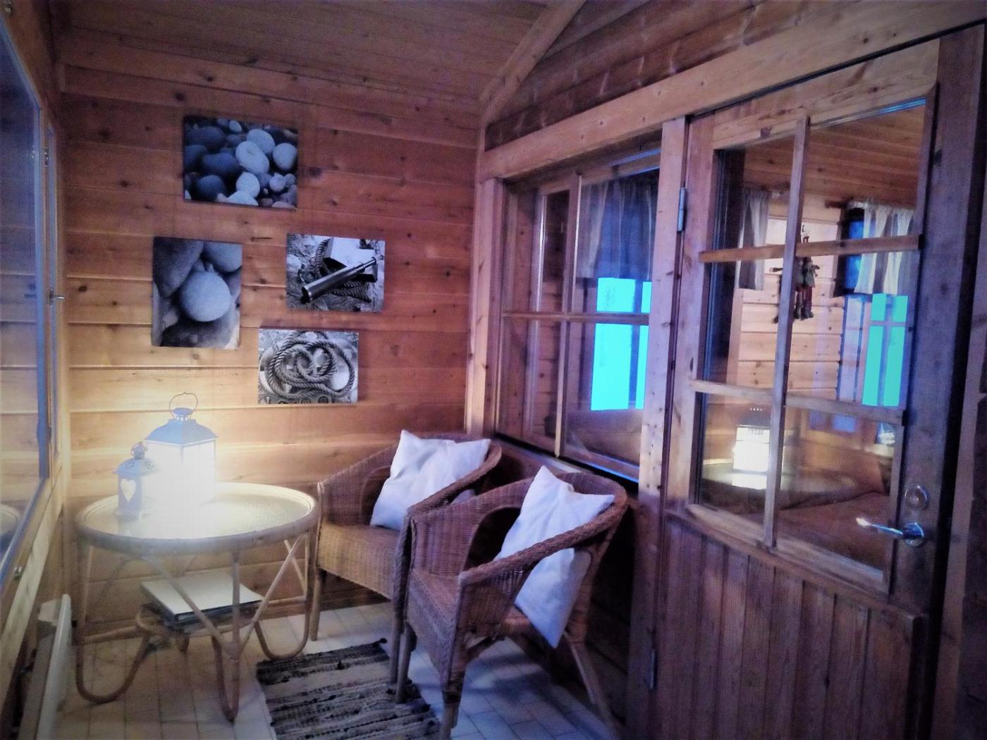 Chalet- Haraldjärventie 55. This chalet features a toaster, microwave and dining area. It offers a seating area with fireplace a small bathroom and toilet, ;