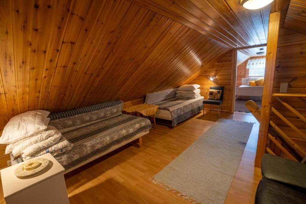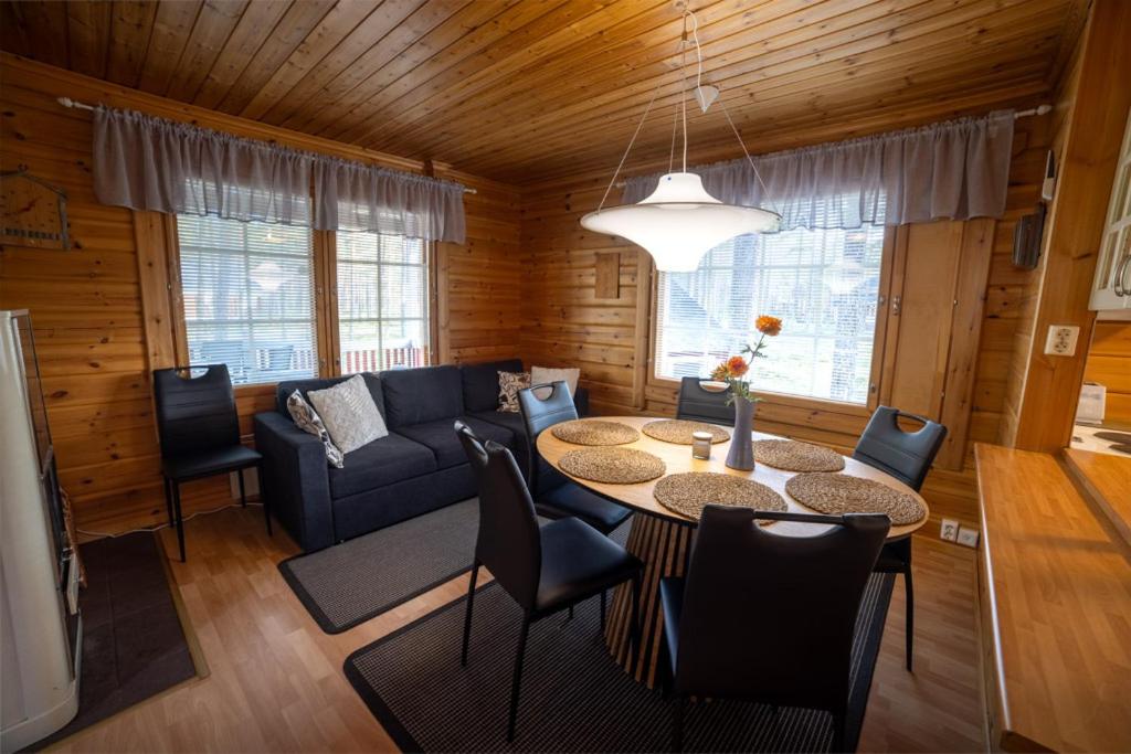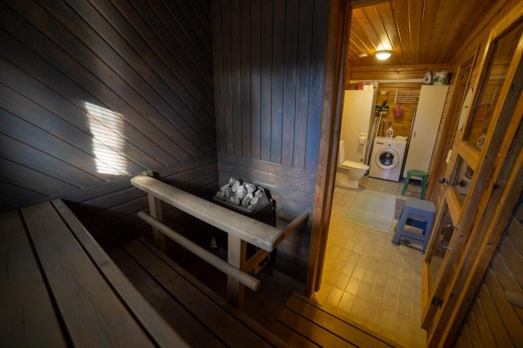 Two-Bedroom Chalet. The sauna and fireplace are the special features of this chalet. Boasting a private entrance, this air-conditioned chalet includes 1 living room, 2 separate bedrooms and 1 bathroom with a shower and a hairdryer. Meals can be prepared in the kitchen, which has a stovetop, a refrigerator, a dishwasher and kitchenware. The spacious chalet offers a washing machine, a coffee machine, a seating area as well as a terrace with garden views. The unit has 6 beds.