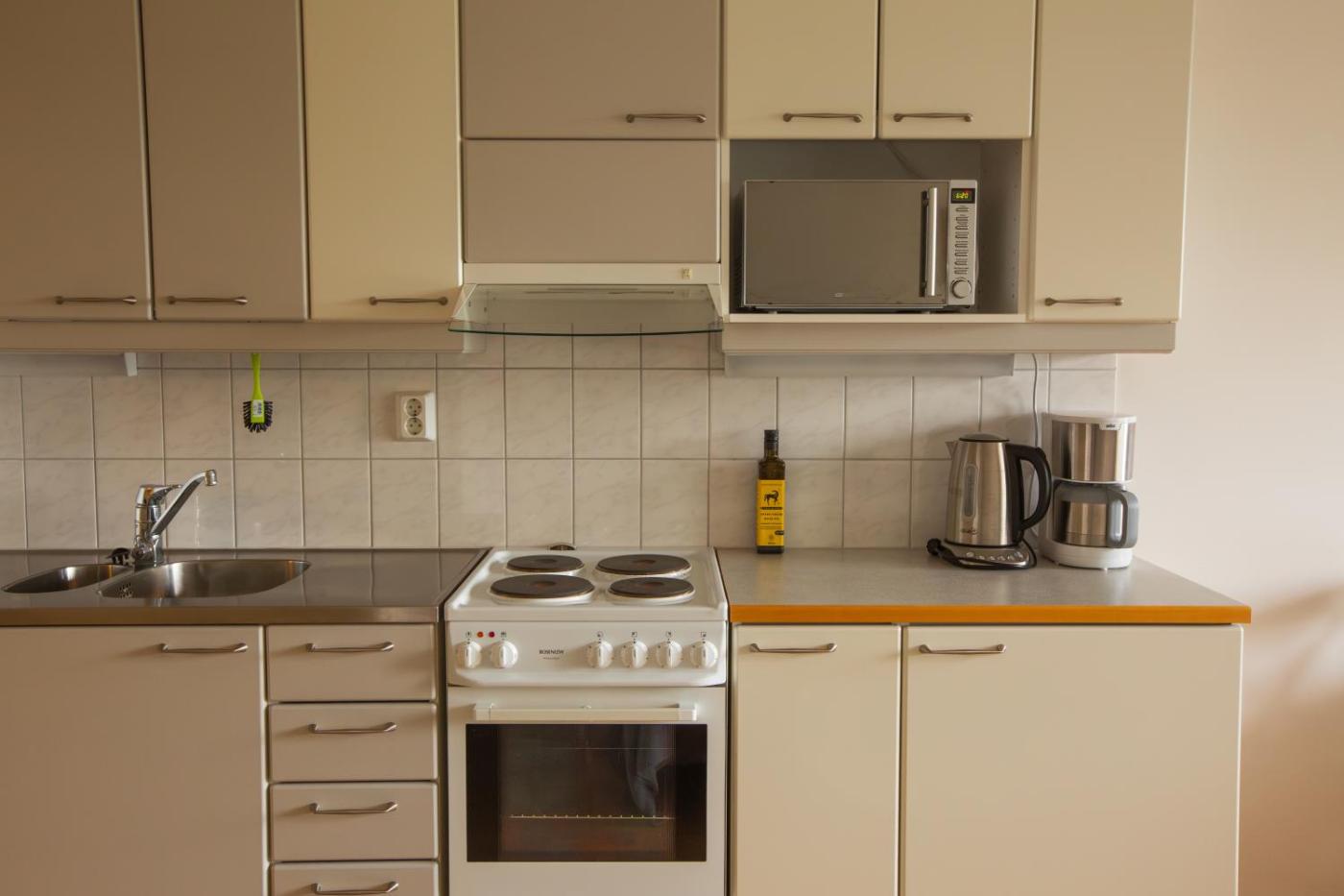 One-Bedroom Apartment. The sauna is the standout feature of this apartment. The apartment has 1 bedroom and 1 bathroom with a shower and free toiletries. In the fully equipped kitchenette, guests will find a stovetop, kitchenware, an oven and a microwave. This apartment features a washing machine, a tea and coffee maker, a flat-screen TV with cable channels and a balcony. The unit has 2 beds.