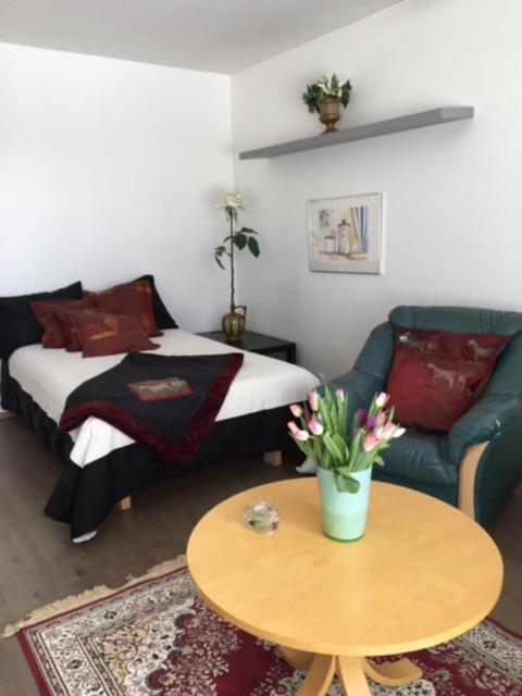 Double Room. The double room provides a dining area, a wardrobe, as well as a private bathroom featuring a shower. In the fully equipped kitchen, guests will find a stovetop, a refrigerator, kitchenware and an oven. The spacious double room offers a TV with cable channels, a private entrance, a tea and coffee maker, a seating area as well as ancourtyard view. The unit offers 2 beds and 1 futon.