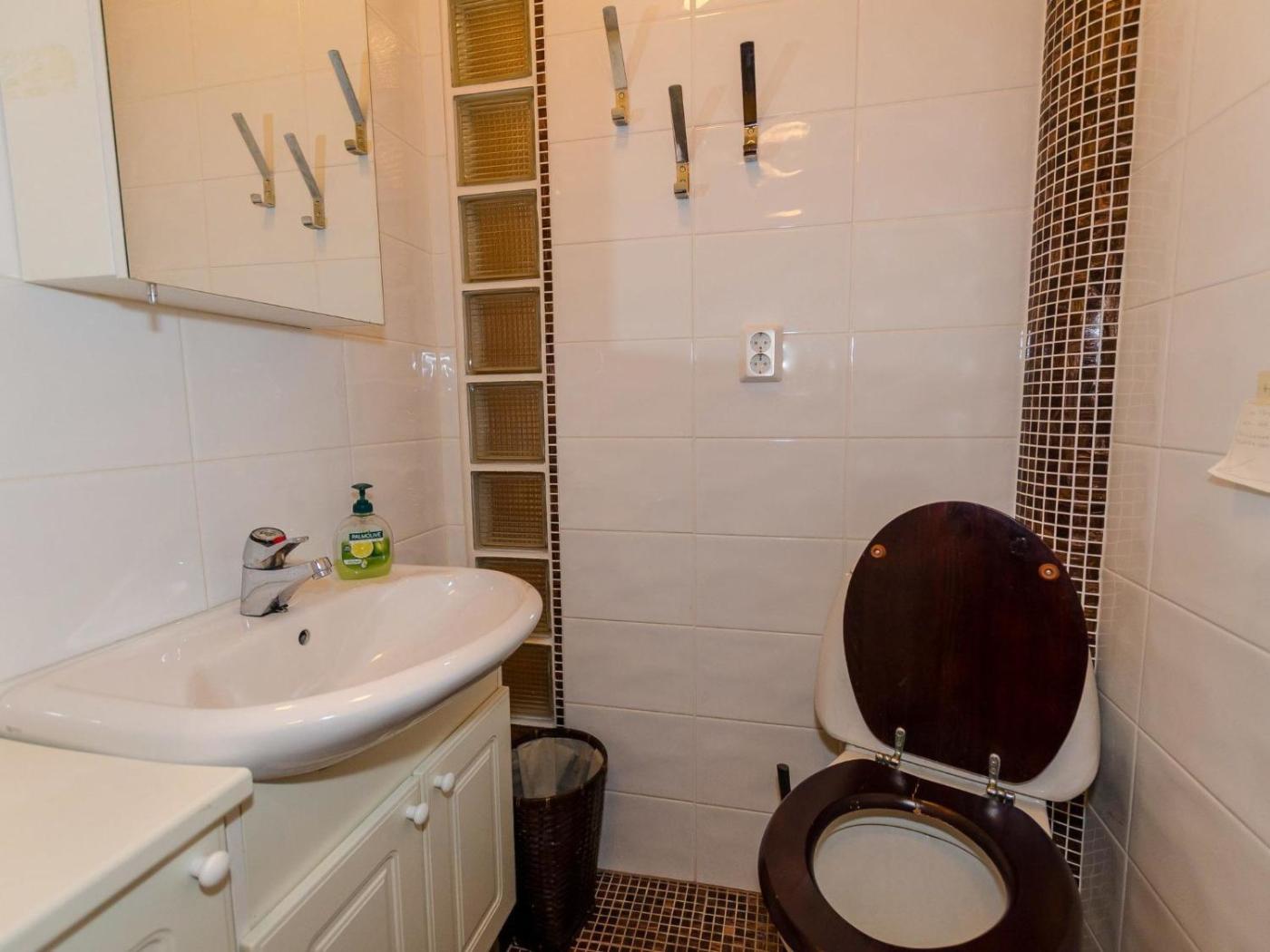 The holiday home is equipped with a TV. A dishwasher, a fridge and kitchenware can be found in the kitchenette.