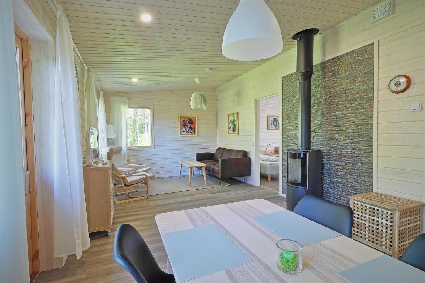 Two-Bedroom Villa. The sauna and fireplace are the standout features of this villa. Featuring a private entrance, this air-conditioned villa comprises 1 living room, 2 separate bedrooms and 1 bathroom with a walk-in shower and a hairdryer. Guests will find a stovetop, a refrigerator, a dishwasher and kitchenware in the well-equipped kitchen. The villa also provides guests with a barbecue. Boasting a terrace with garden views, this villa also provides a washing machine and a flat-screen TV with streaming services. The unit offers 3 beds.