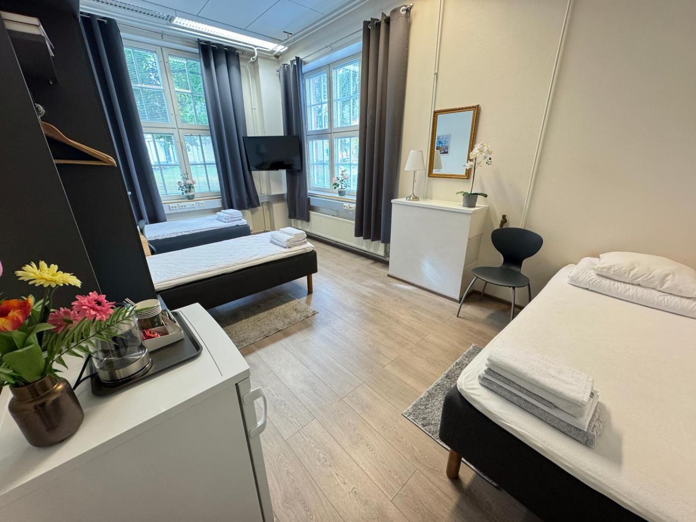 Situated by Kallavesi Lake, Hostel Hermanni is 1 km from Kuopio’s main shopping street, Kauppakatu. It offers functional rooms with a flat-screen TV and 2 shared kitchens. Wi-fi and parking are free.