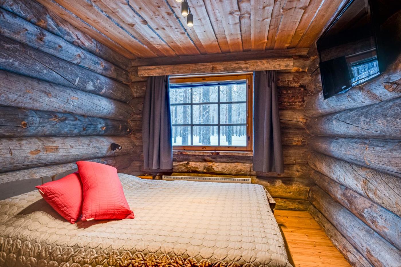 Three-Bedroom Villa. This villas special features are the sauna and the fireplace. This villa comprises 1 living room, 3 separate bedrooms and 1 bathroom with a shower and free toiletries. In the well-fitted kitchen, guests will find a stovetop, a refrigerator, a dishwasher and kitchenware. The air-conditioned villa provides a flat-screen TV, a washing machine, a tea and coffee maker, a seating area as well as lake views. The unit offers 4 beds.