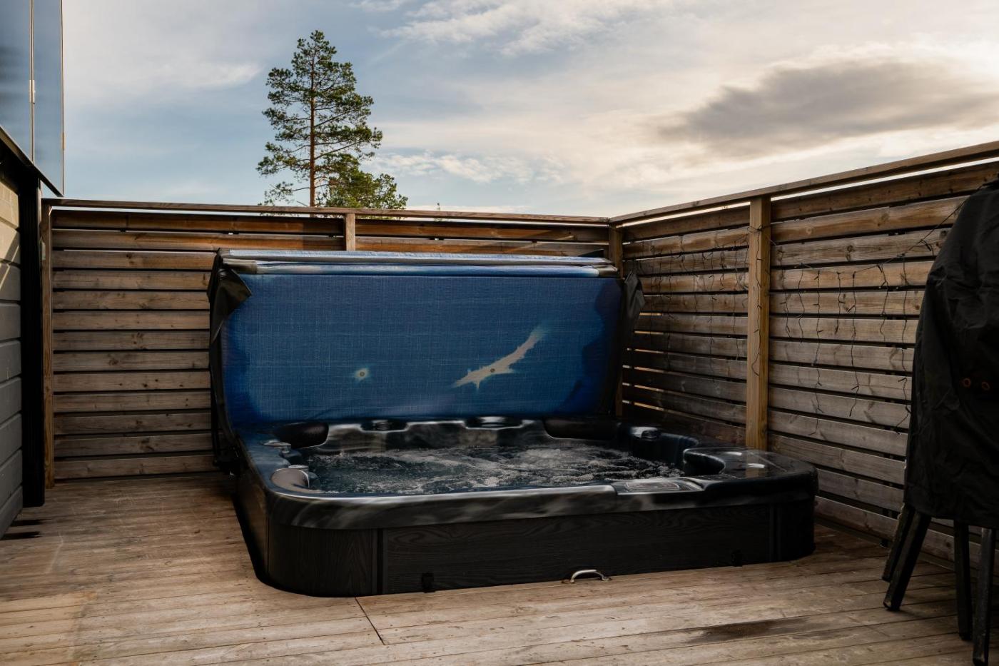 One-Bedroom House. This holiday home boasts a hot tub, spa bath and sauna. Featuring a private entrance, this air-conditioned holiday home comprises 1 living room, 1 separate bedroom and 1 bathroom with a bath or a shower and a bidet. The well-fitted kitchen features a stovetop, a refrigerator, a dishwasher and kitchenware. Boasting a terrace with garden views, this holiday home also provides a washing machine and a flat-screen TV. The unit offers 2 beds.