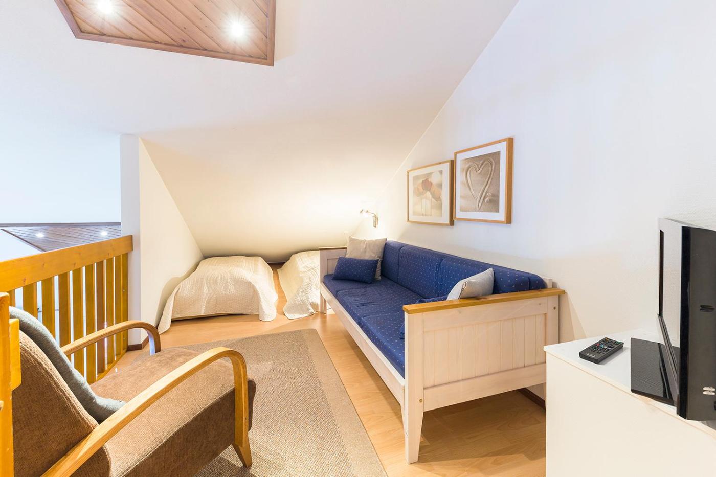 Two-Bedroom Apartment. This apartment features two bedrooms and a sleeping loft with 2 single beds and a sofa bed.
