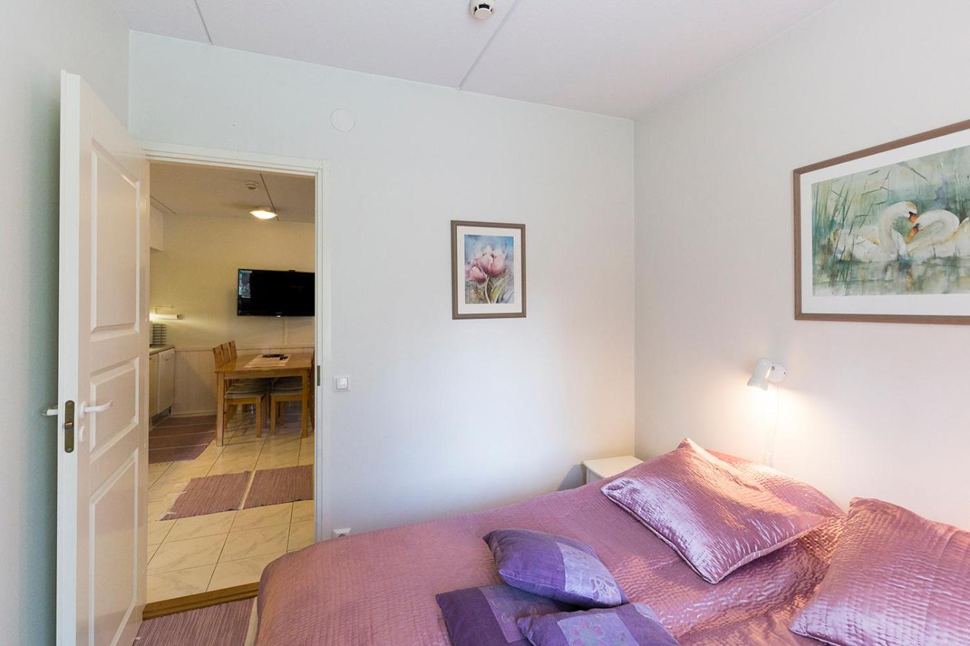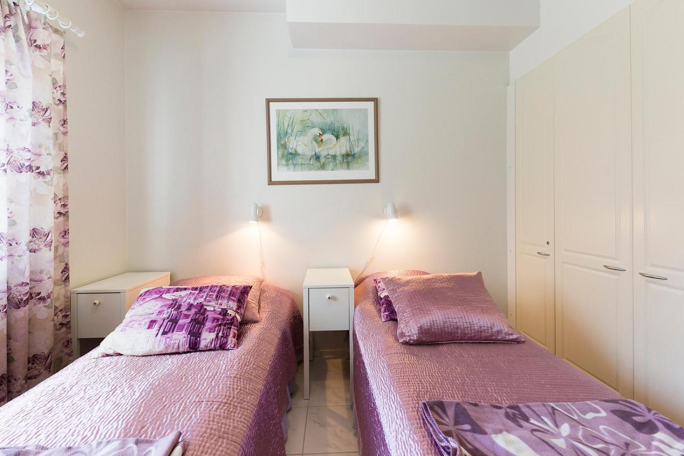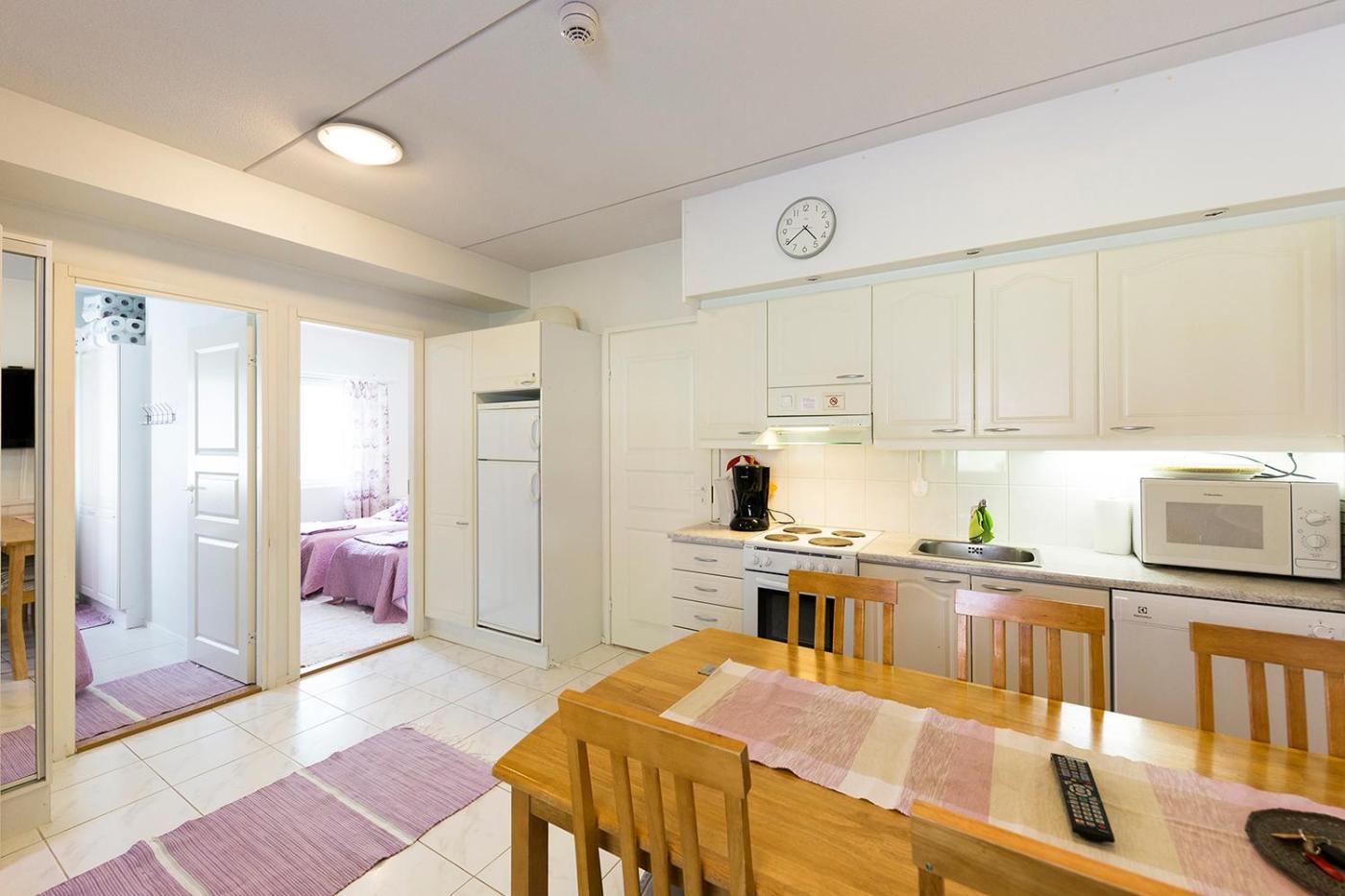 Two-Bedroom Apartment. This apartments standout feature is the sauna. The apartment offers a washing machine, a coffee machine, as well as a shared bathroom boasting a shower. A kitchenette fitted with a refrigerator, an oven and a microwave is available for cooking and storing food. This apartment has a sofa, heating and a flat-screen TV. The unit has 5 beds.