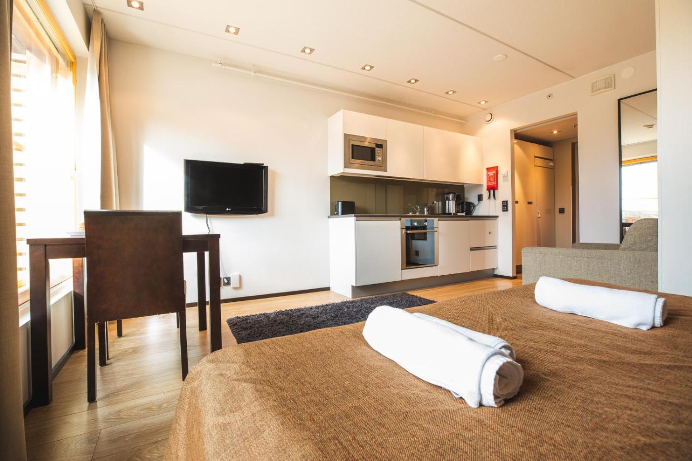 One-Bedroom Apartment. This apartment has a sauna and dishwasher.
