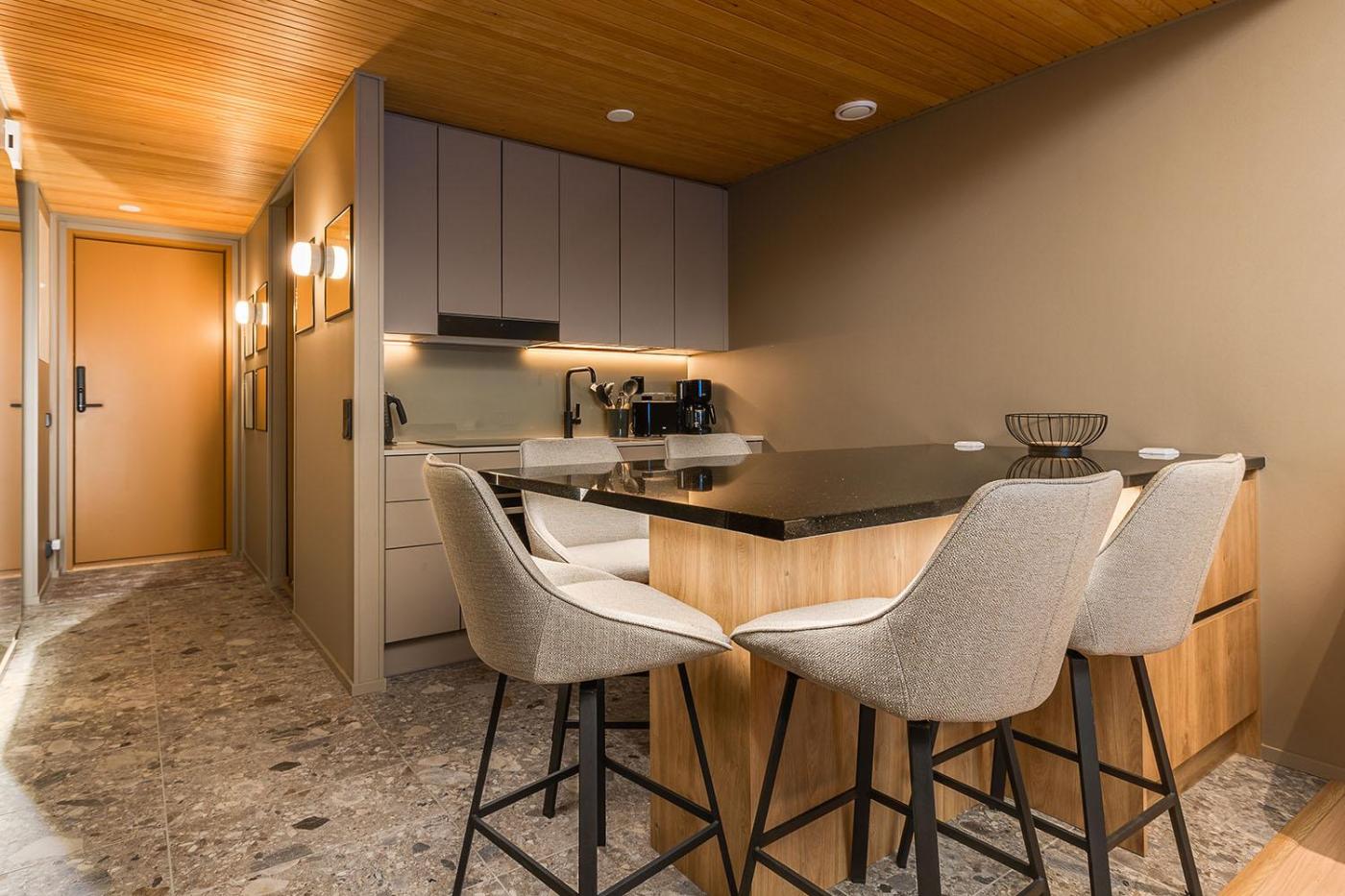 Two-Bedroom Apartment. This apartments special feature is the sauna. Featuring a private entrance, this air-conditioned apartment comprises a kitchen, 2 bedrooms and 1 bathroom with a shower and a hairdryer. Guests can make meals in the kitchen that is equipped with a stovetop, a refrigerator, a dishwasher and kitchenware. Boasting a terrace with mountain views, this apartment also provides a washing machine and a flat-screen TV. The unit offers 2 beds.