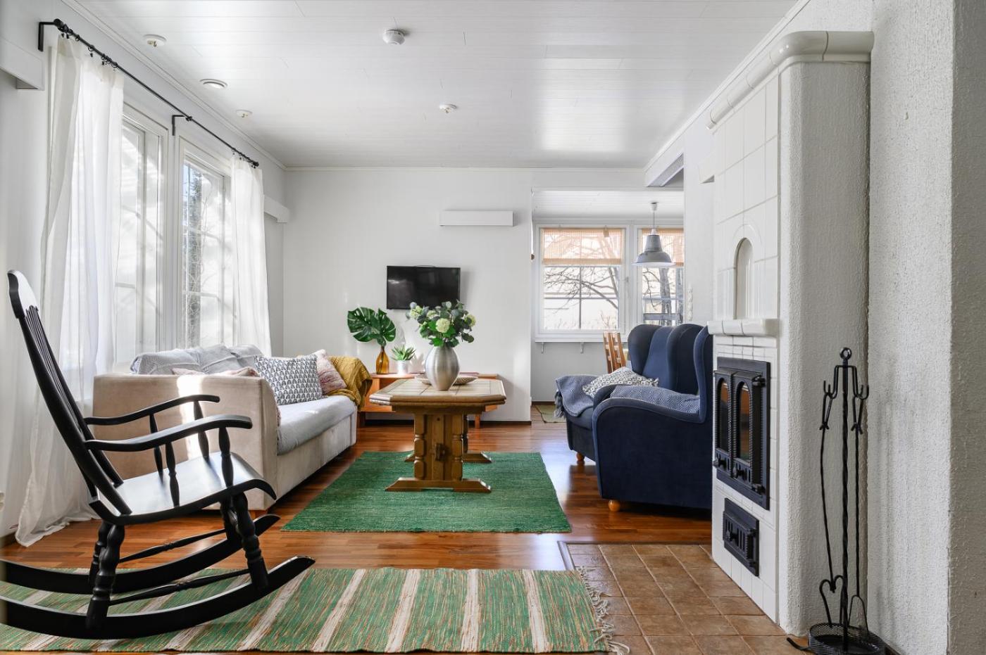 Four-Bedroom Apartment. Guests will have a special experience as this apartment offers a sauna and a fireplace. Featuring a private entrance, this spacious apartment also consists of 4 bedrooms, 2 bathrooms and a seating area. The apartments kitchen, which features a refrigerator, is available for cooking and storing food. The apartment provides a washing machine, a tea and coffee maker, as well as a terrace and a balcony. The unit offers 8 beds.