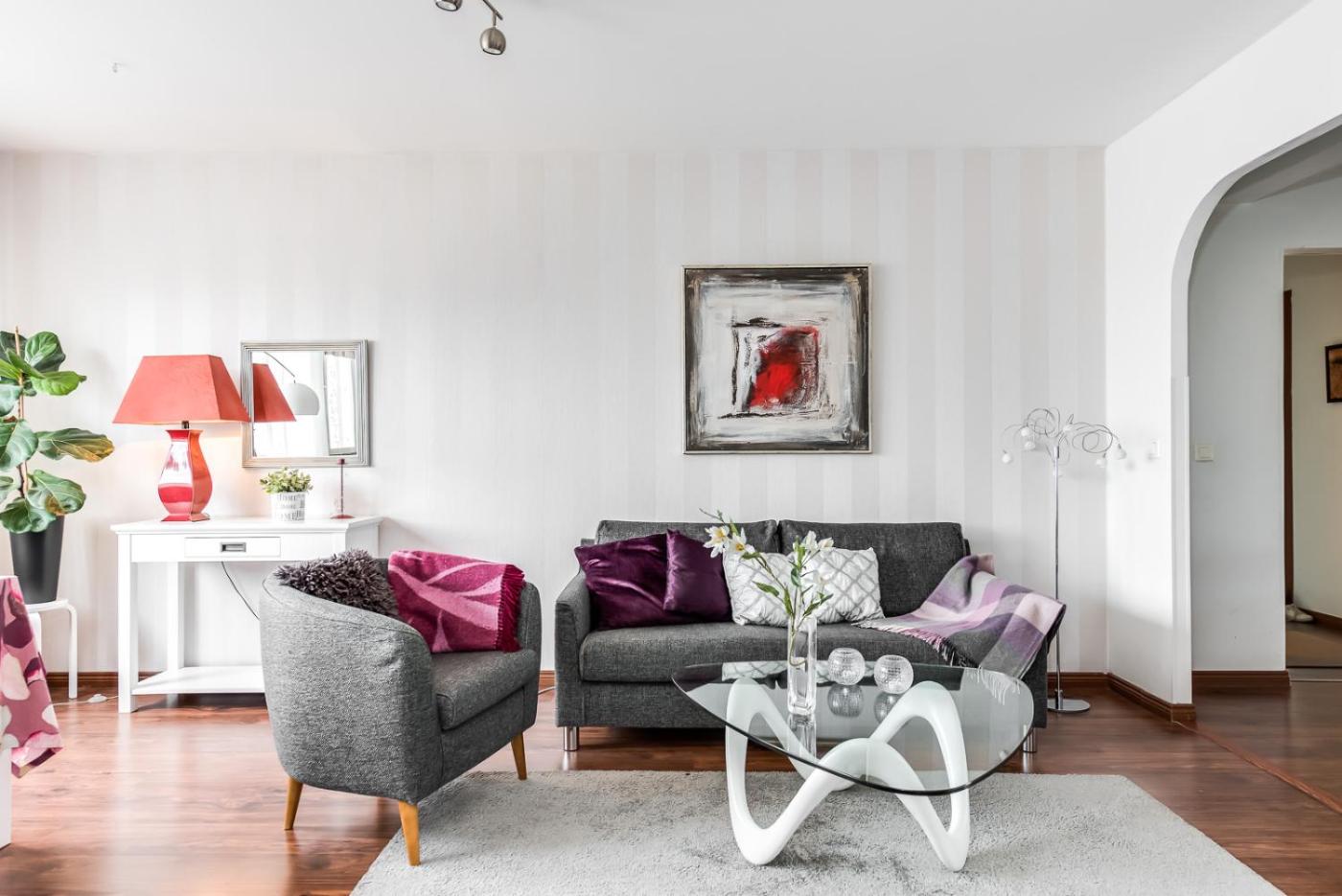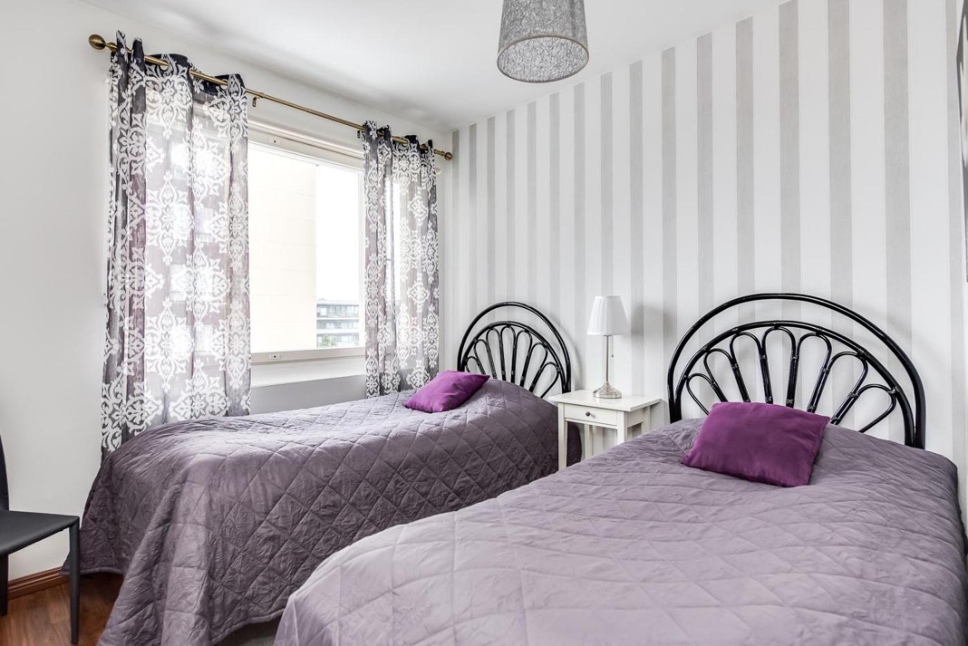 Three-Bedroom Apartment with Sauna. This apartment provides a sauna. Featuring a private entrance, this spacious apartment also comprises 1 living room, 3 separate bedrooms and 1 bathroom with a shower. Meals can be prepared in the well-fitted kitchen, which comes with a stovetop, a refrigerator, a dishwasher and kitchenware. The apartment features parquet floors, a seating area with a flat-screen TV, a dining area, a wardrobe as well as city views. The unit offers 5 beds.