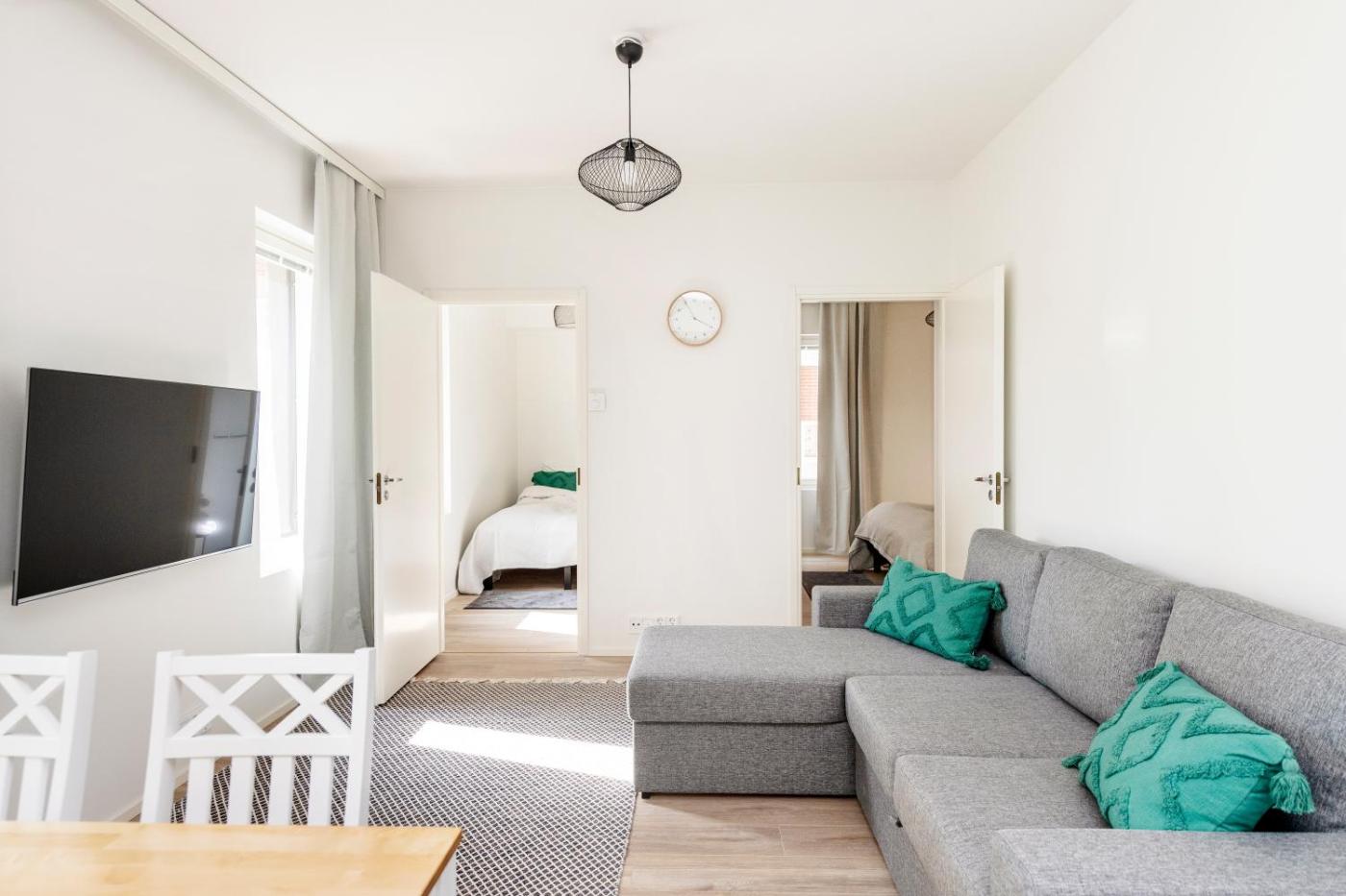 Two-Bedroom Apartment. This apartments standout feature is the sauna. This apartment is comprised of 1 living room, 2 separate bedrooms and 1 bathroom with a shower and a hairdryer. In the kitchen, guests will find a refrigerator, kitchenware and a microwave. Featuring a balcony, this apartment also offers a washing machine, a tea and coffee maker and a flat-screen TV. The unit offers 5 beds.