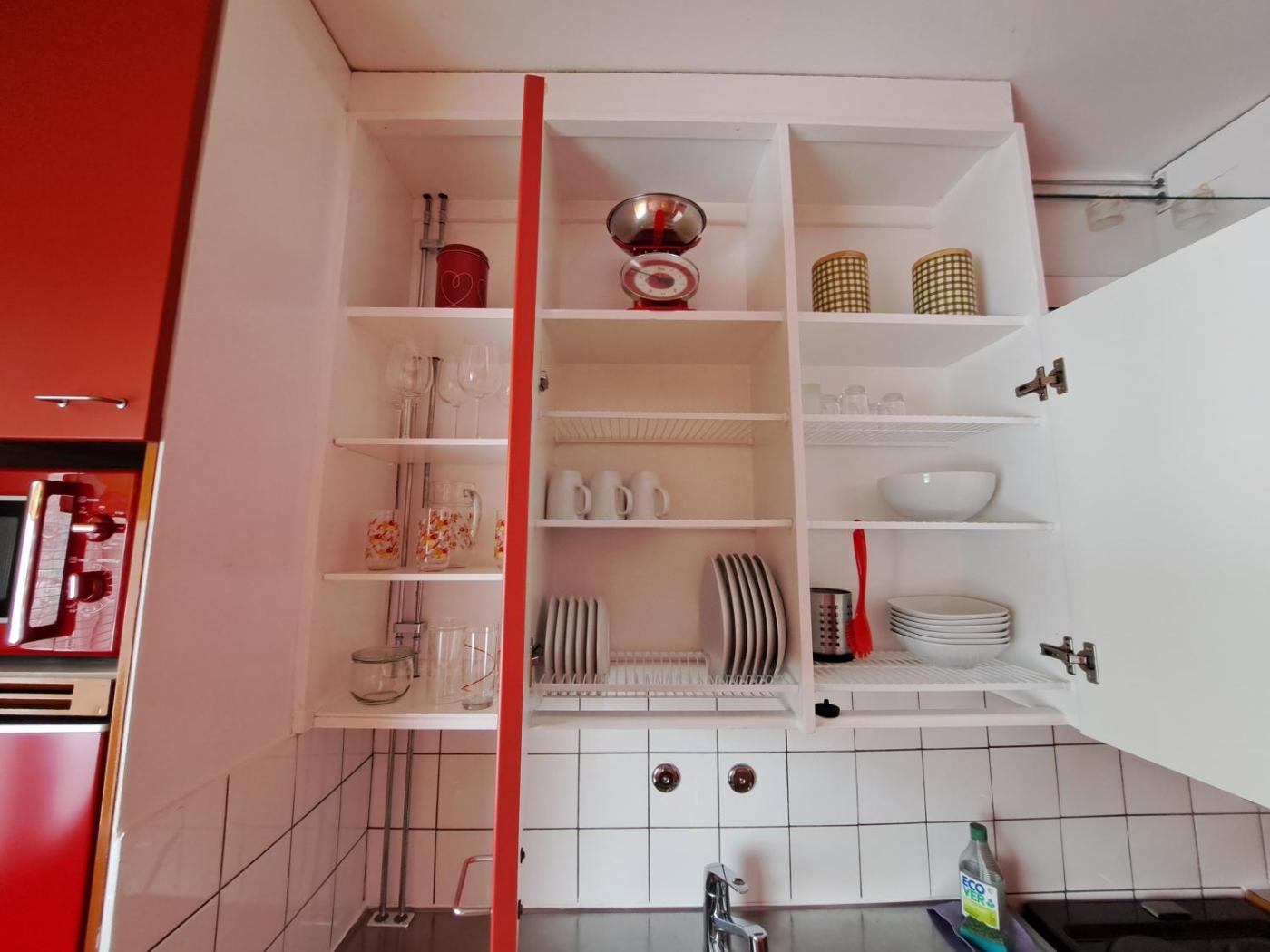 One-Bedroom Apartment. This apartment includes 1 living room, 1 separate bedroom and 1 bathroom with a bath. In the kitchen, guests will find a stovetop, a refrigerator, kitchenware and an oven. Boasting a balcony with ancourtyard view, this apartment also offers a washing machine and a flat-screen TV. The unit has 2 beds.