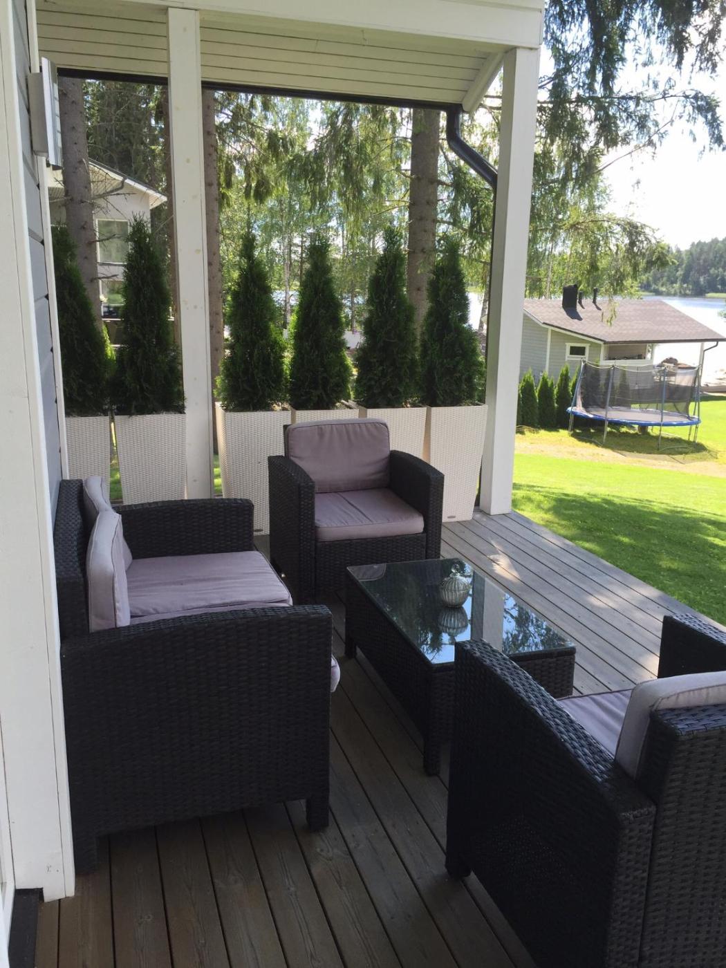 Villa. The sauna and fireplace are the special features of this villa. Boasting a private entrance, this air-conditioned villa comes with a kitchen, 3 bedrooms and 1 bathroom with a shower and a bidet. Guests will find a stovetop, a refrigerator, a dishwasher and kitchenware in the well-equipped kitchen. The villa also includes a barbecue. Featuring a terrace with lake views, this villa also features a washing machine and a flat-screen TV with streaming services. The unit has 7 beds.