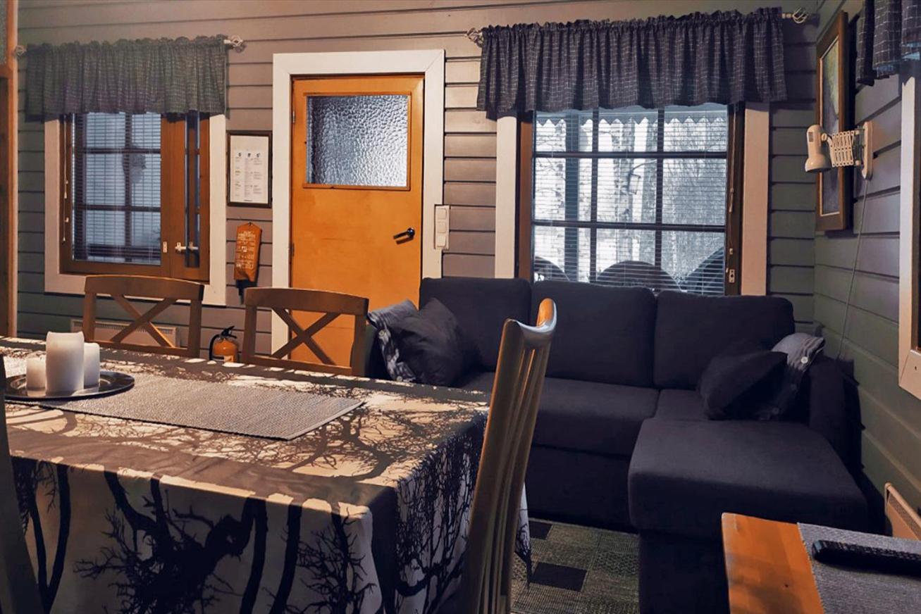 One-Bedroom Chalet. The sauna and fireplace are the standout features of this chalet. Featuring a private entrance, this chalet consists of 1 living room, 1 separate bedroom and 1 bathroom with a shower and a hairdryer. Guests will find a stovetop, a refrigerator, a dishwasher and kitchenware in the well-equipped kitchenette. The chalet also offers a barbecue. Boasting a terrace with lake views, this chalet also provides a coffee machine and a flat-screen TV. The unit offers 4 beds.