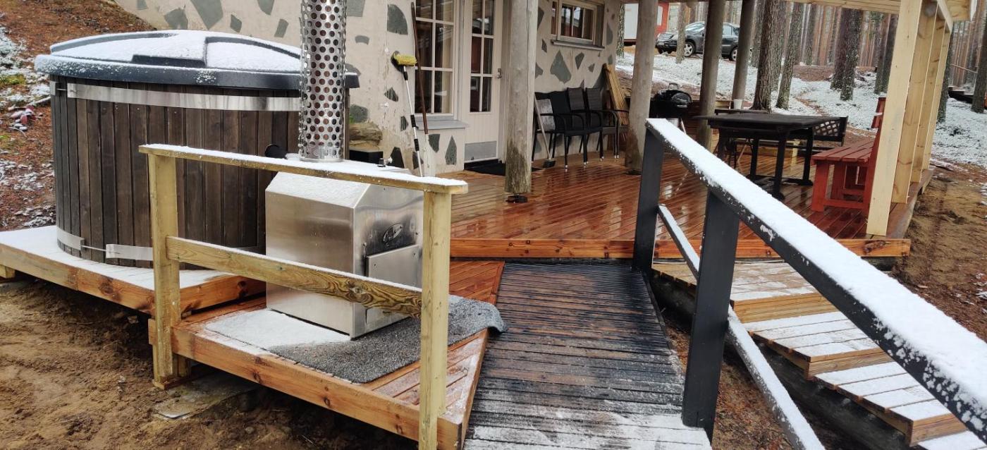 Featuring air-conditioned accommodation with a patio, Rokuan Unelma is located in Rokua. This beachfront property offers access to a balcony, free private parking and free WiFi. The holiday home has an outdoor fireplace and a sauna.