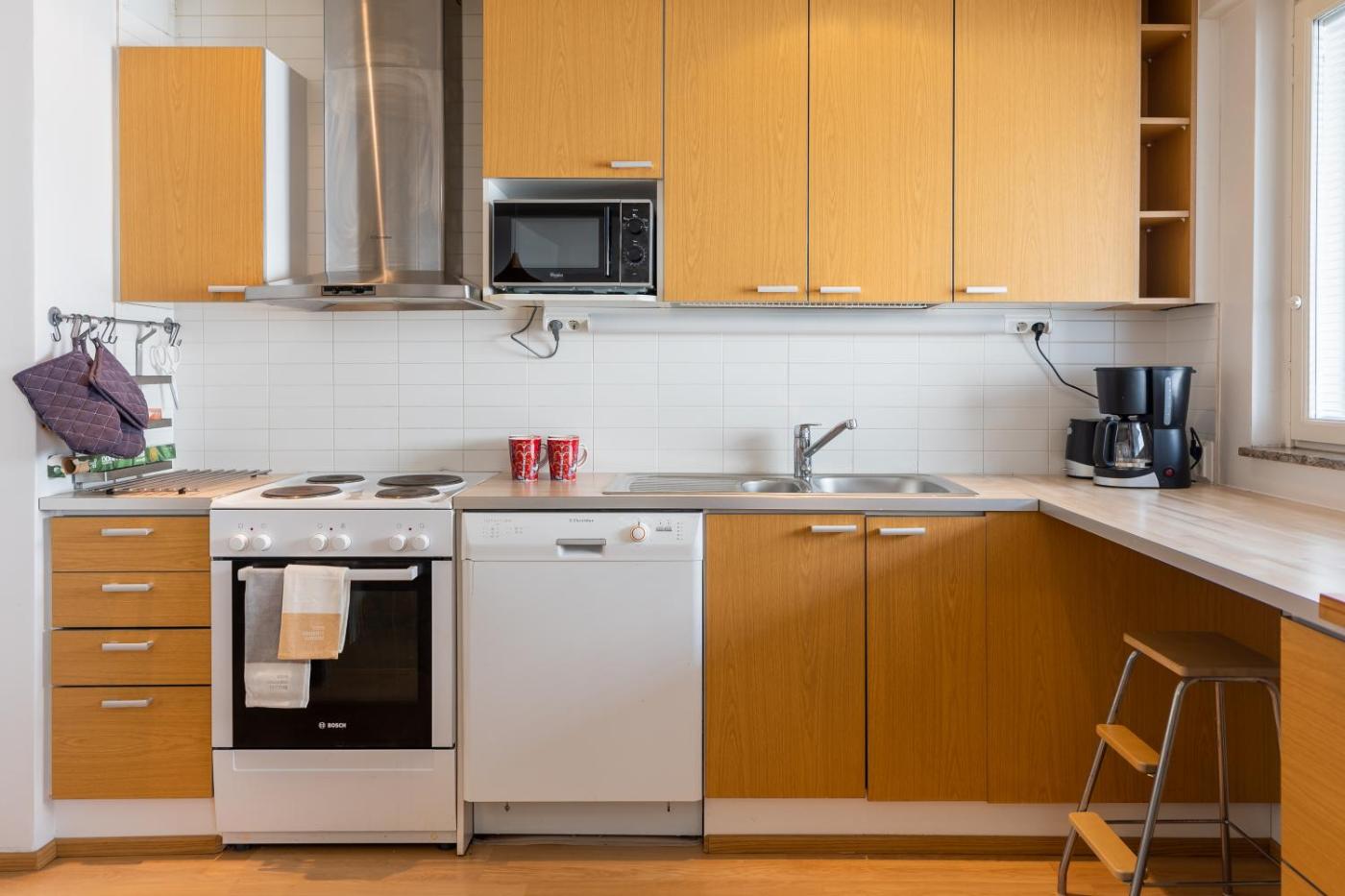 Two-Bedroom Apartment. This apartment provides a sauna. This spacious apartment comprises 1 living room, 2 separate bedrooms and 1 bathroom with a shower and a hairdryer. Guests can make meals in the kitchen that comes with a stovetop, a refrigerator, a dishwasher and kitchenware. The apartment features parquet floors, a seating area with a flat-screen TV, a washing machine, a tea and coffee maker as well as city views. The unit offers 5 beds.