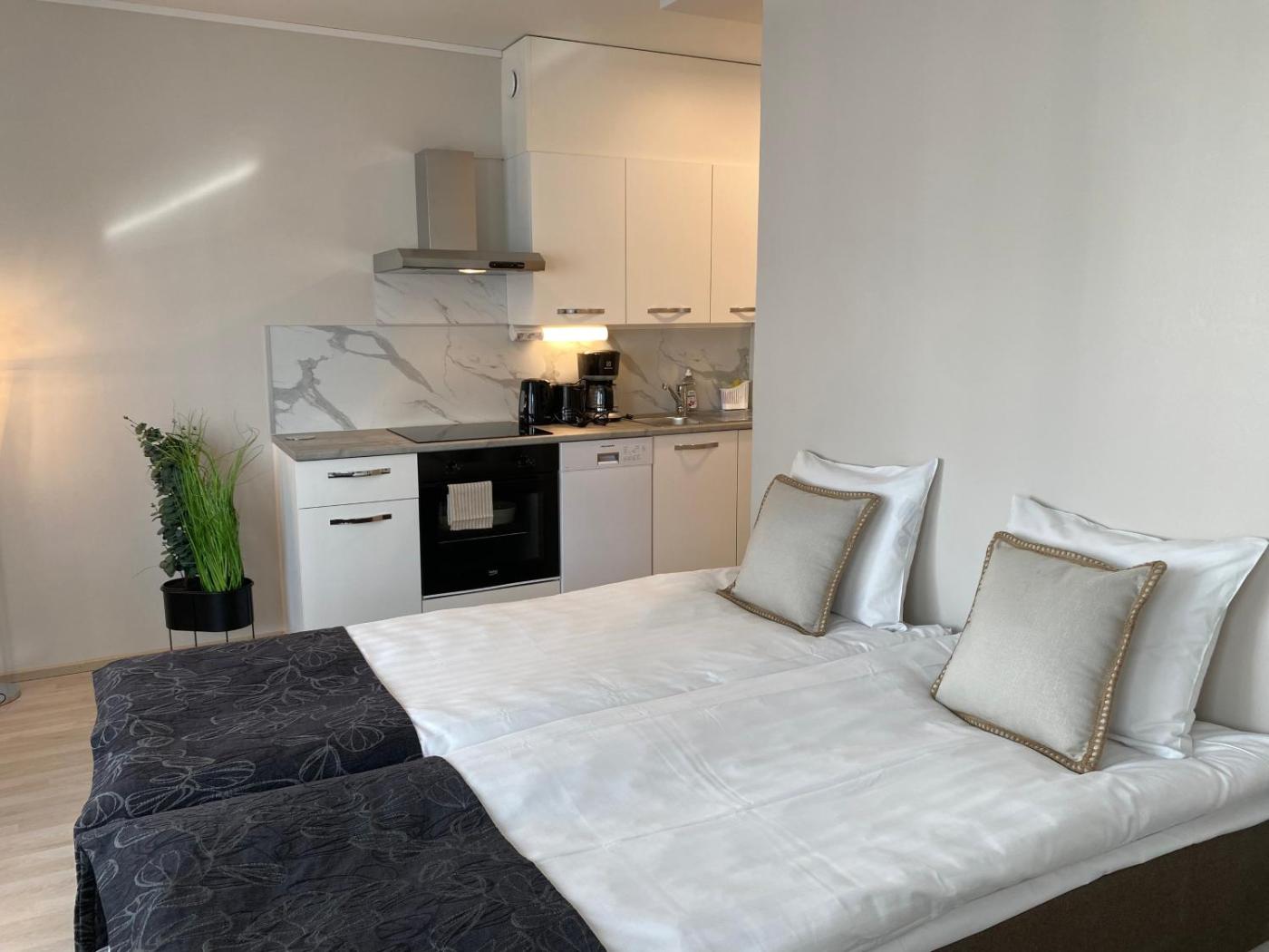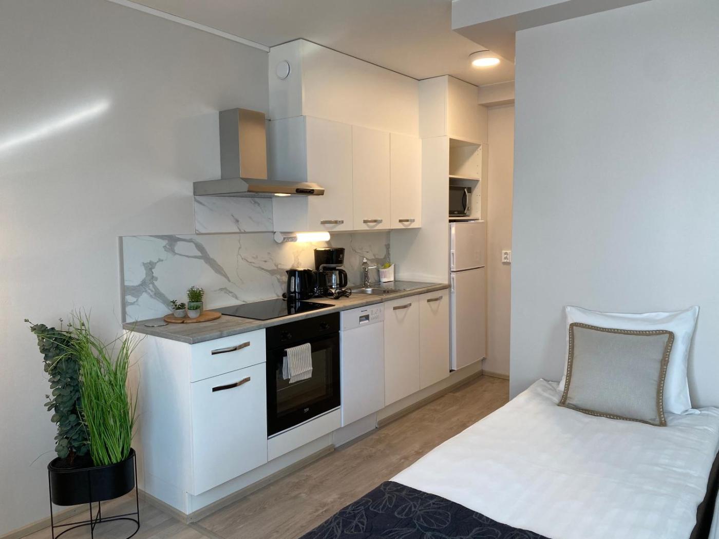 Apartment. This apartment comes with 1 bedroom, kitchenette and 1 bathroom with a hairdryer. The well-equipped kitchenette has a stovetop, a refrigerator, kitchenware and an oven. The apartment features a flat-screen TV, a washing machine, soundproof walls, a tea and coffee maker as well as city views. The unit has 2 beds.