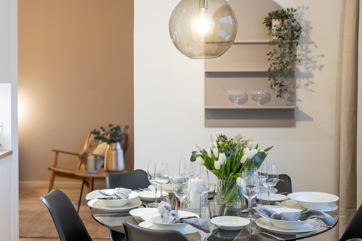 Two-Bedroom Apartment. Meals can be prepared in the well-fitted kitchen, which features a stovetop, a refrigerator, a dishwasher and kitchenware. The air-conditioned apartment features a flat-screen TV, a washing machine, a tea and coffee maker, a dining area as well as city views. The unit has 4 beds.