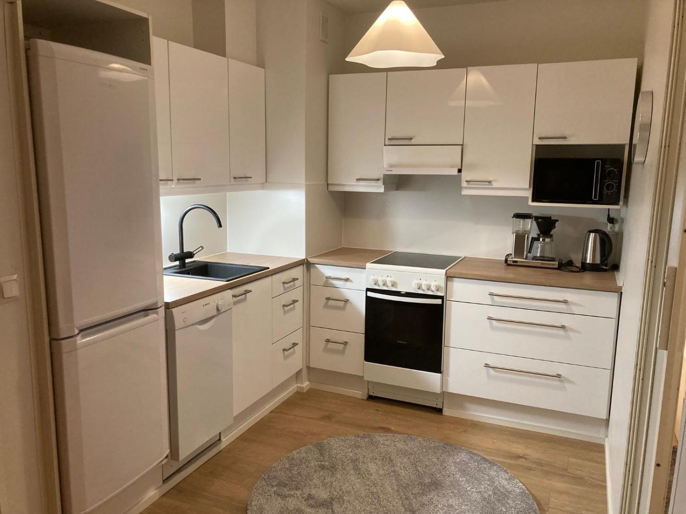 One-Bedroom Apartment. Featuring a private entrance, this apartment consists of 1 living room, 1 separate bedroom and 1 bathroom with a shower and a bidet. Guests can make meals in the kitchen that is equipped with a stovetop, a refrigerator, a dishwasher and kitchenware. The apartment provides a flat-screen TV, a washing machine, soundproof walls, a tea and coffee maker as well as city views. The unit offers 2 beds.