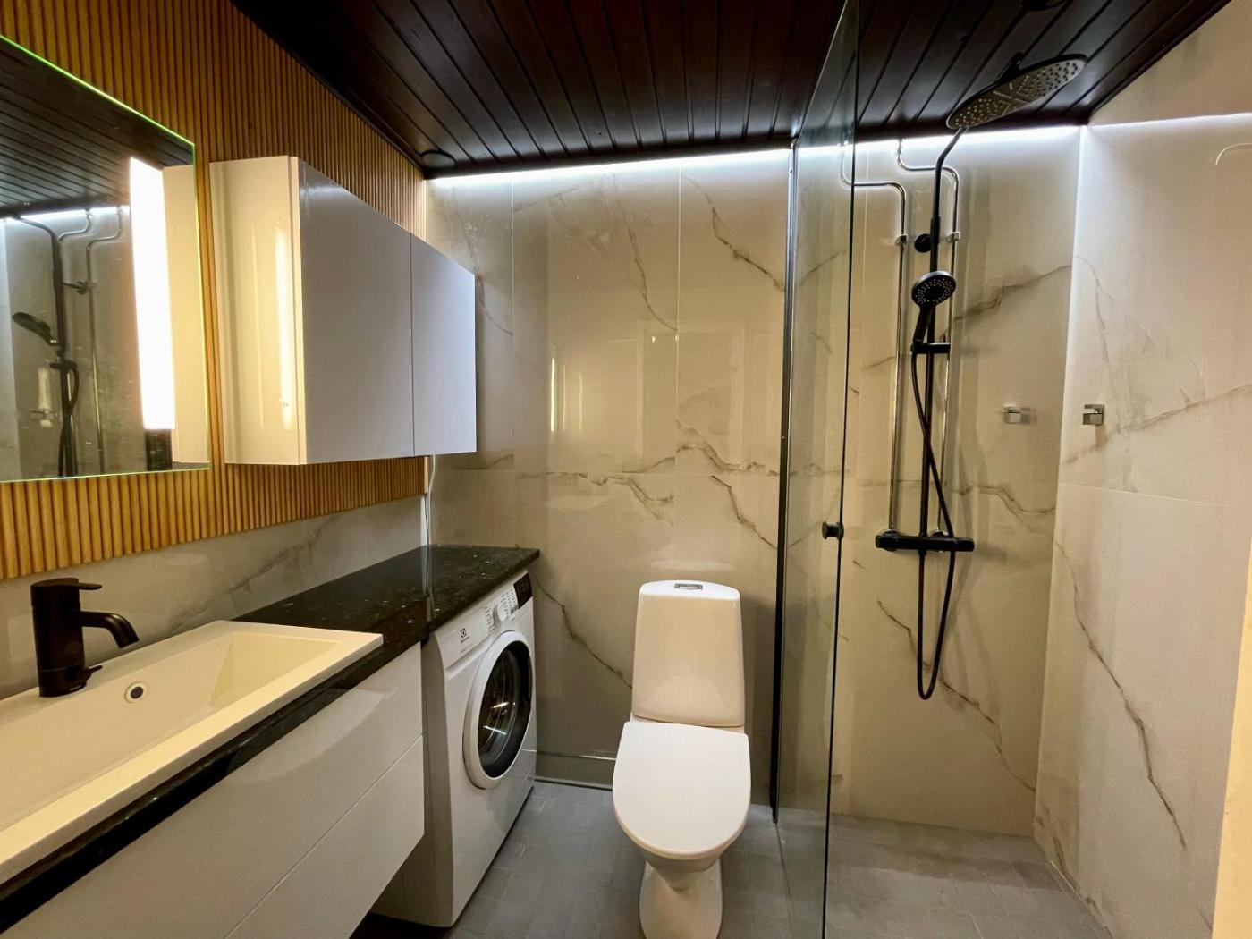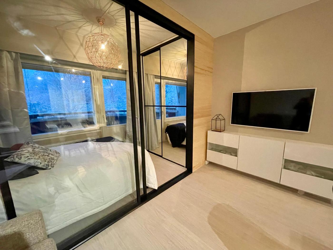 One-Bedroom Apartment. The sauna is the standout feature of this apartment. This apartment comes with 1 living room, 1 separate bedroom and 1 bathroom with a shower. In the well-fitted kitchen, guests will find a stovetop, a refrigerator, a dishwasher and kitchenware. Boasting a balcony with city views, this apartment also features a washing machine and a flat-screen TV with cable channels. The unit has 2 beds.