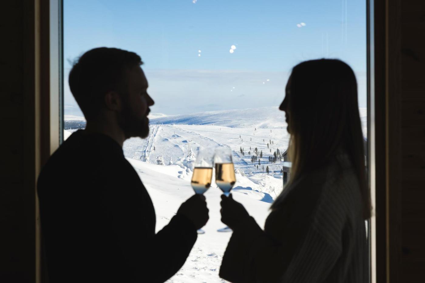 Aurora Cabin. Featuring a glass dome over the bed, this suite offers uninterrupted views of the sky and surrounding nature. There is a private entrance and flat-screen TV. ;