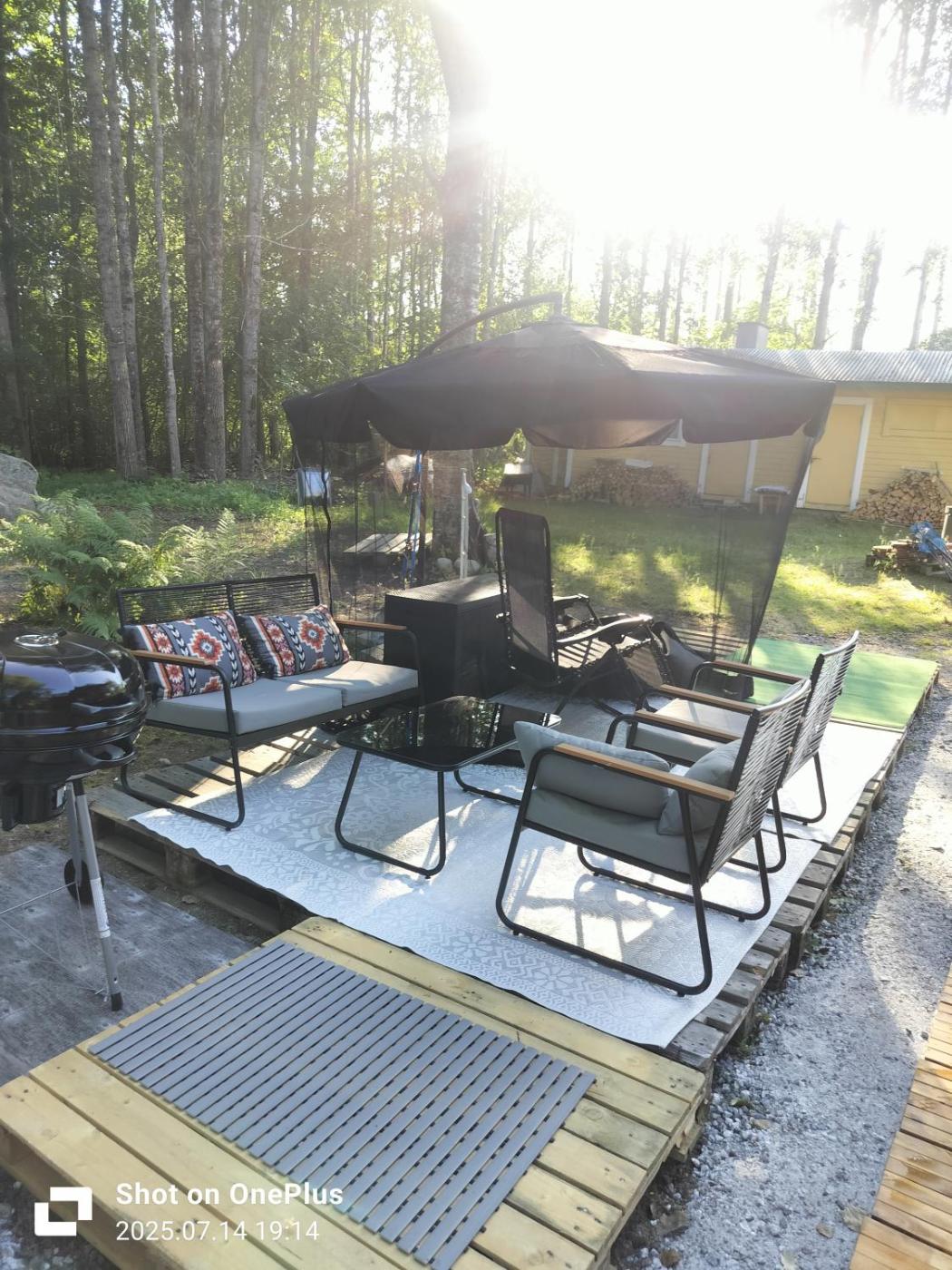 One-Bedroom House. This holiday home features a sauna. Featuring a private entrance, this air-conditioned holiday home comprises 1 living room, 2 separate bedrooms and 1 bathroom with a shower and a hairdryer. Guests will find a stovetop, a refrigerator, kitchenware and an oven in the well-equipped kitchen. The holiday home also provides guests with a barbecue. Boasting a terrace with garden views, this holiday home also provides a washing machine and a flat-screen TV with cable channels. The unit offers 5 beds.