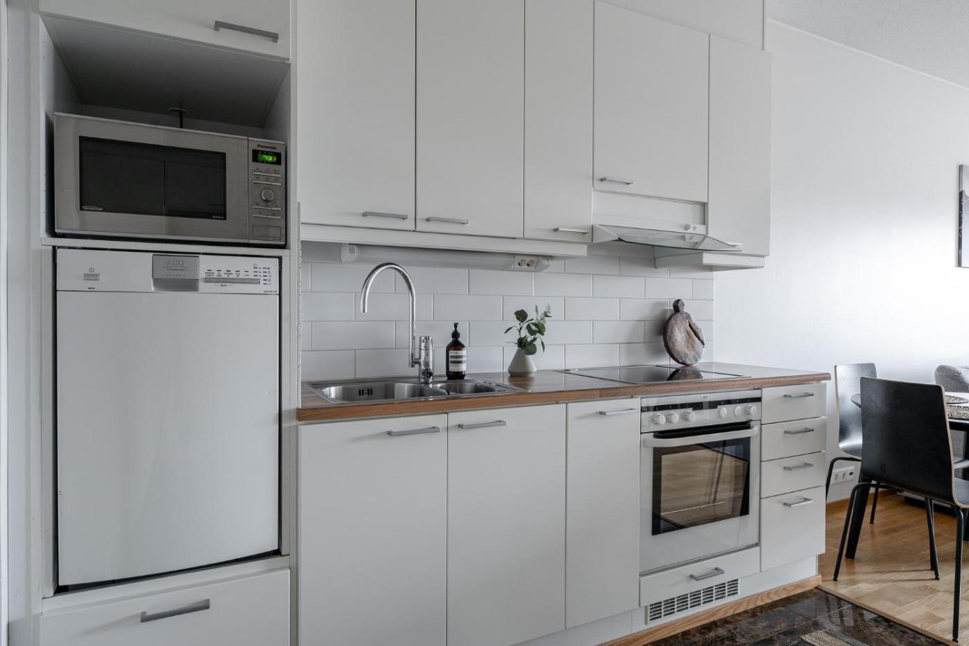 Apartment with Sauna. The sauna is a top feature of this apartment. This apartment comes with 1 living room, 1 separate bedroom and 1 bathroom with a shower and a hairdryer. In the fully equipped kitchen, guests will find a stovetop, a refrigerator, a dishwasher and kitchenware. The apartment features a washing machine, soundproof walls, a tea and coffee maker, a flat-screen TV with cable channels, as well as lake views. The unit has 3 beds.